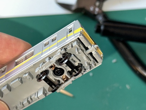 まず、このダミーカプラー一式はTNカプラーのホルダーにぱっちりはまるようになっているので、取り外して、固定用の爪を撤去します。