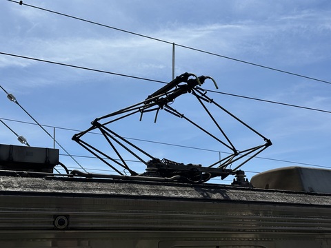伊豆急8000系のパンタグラフはざっと見た感じですと、剛体架線対応型で統一されているようです。